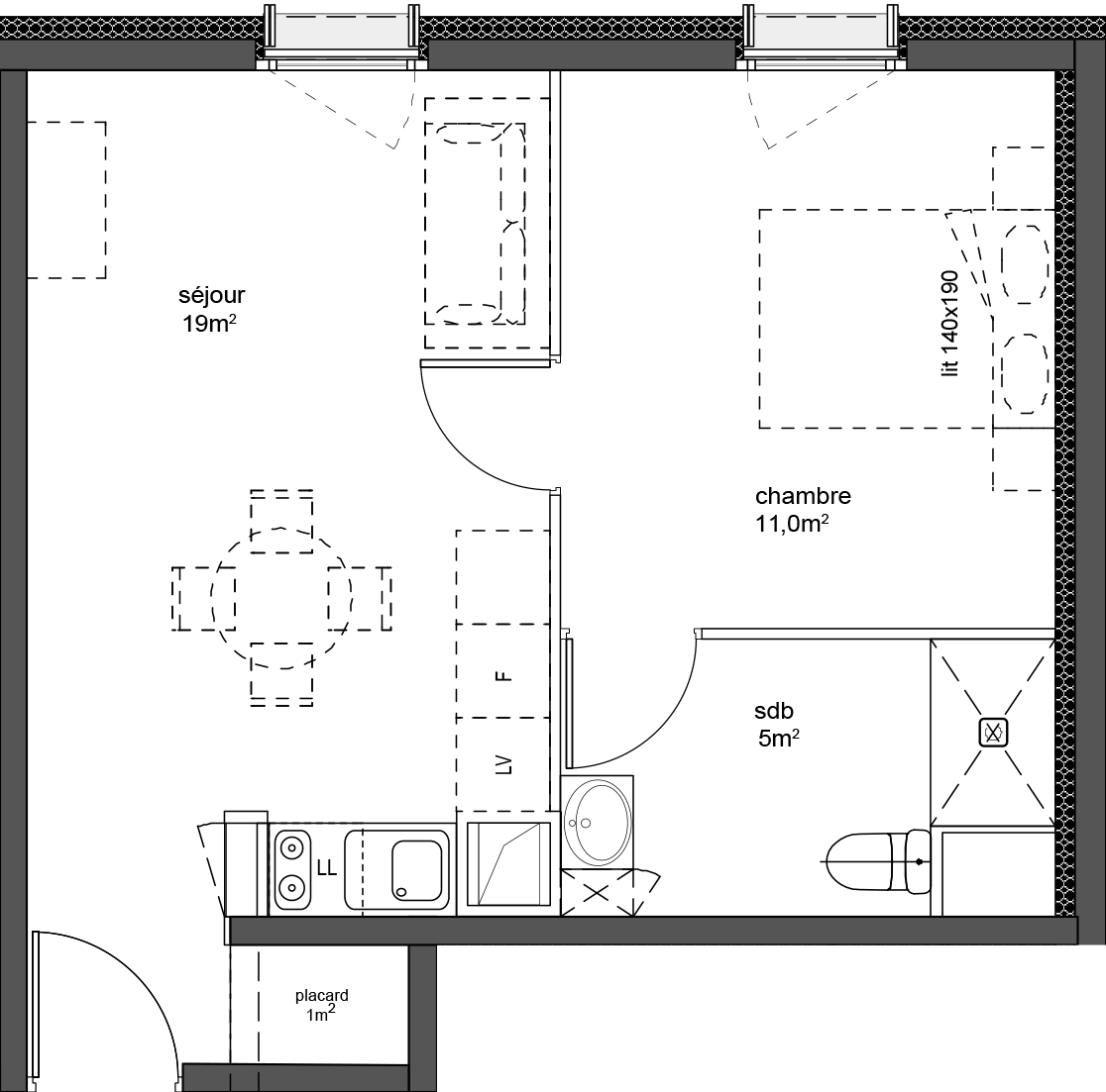 | T1 Bis meublé | 31.5m² | 600 € | Etudiants /Jeunes actifs |